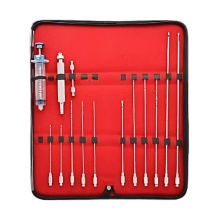 End Line:A complete fat harvesting solution – combining ergonomic titanium comfort with precision stainless steel cannulas for reliable surgical outcomes.