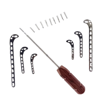 This veterinary locking plate and D femur plate set provides surgeons with a comprehensive, versatile, and anatomically precise solution for managing complex fractures in animals, ensuring secure fixation and reliable healing.