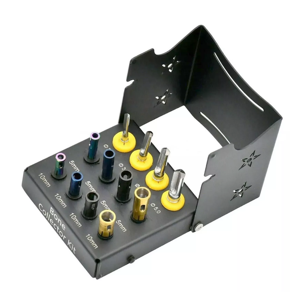 The 12-Piece Dental Bone Collector Kit – Dental Bur Drills Stopper Set is a comprehensive instrument set designed for bone harvesting, collection, and augmentation during implant surgery, periodontal therapy, and oral reconstruction. Each component—including specialized drills, burs, and stoppers—is precision-engineered for efficient bone collection while maintaining sterile conditions.