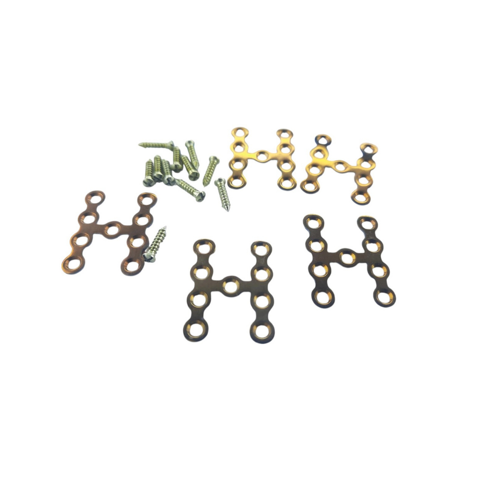 Mini H plates designed for maxillofacial and craniofacial fracture fixation.