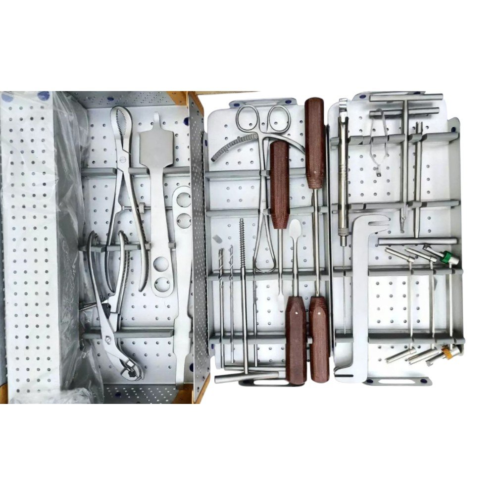 Complete 46-piece TPLO set including biocurve LCP plates and screws.