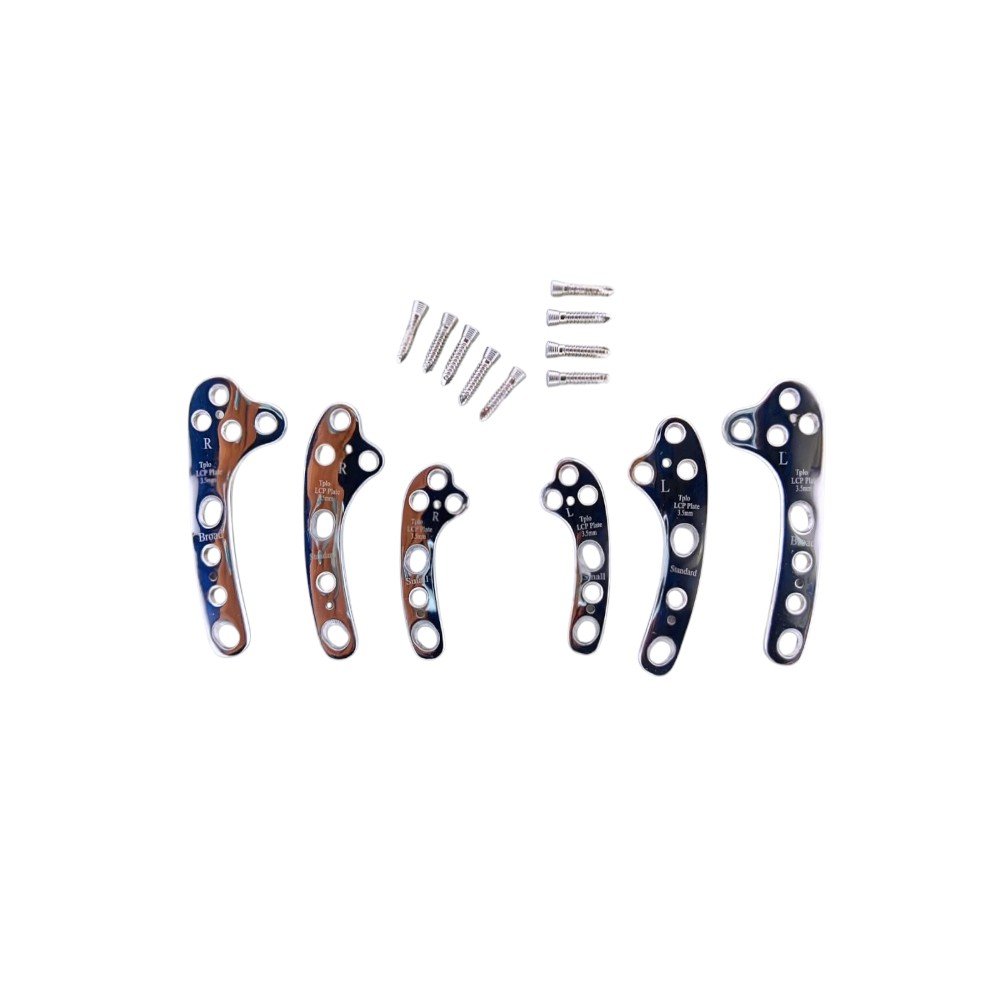 Complete 46-piece TPLO set including biocurve LCP plates and screws.
