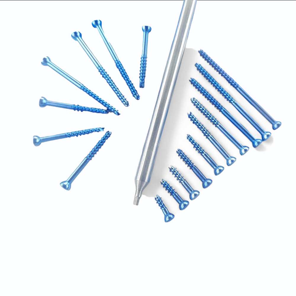 High-precision titanium cannulated screws with screwdriver for secure and versatile small-bone fracture fixation.
