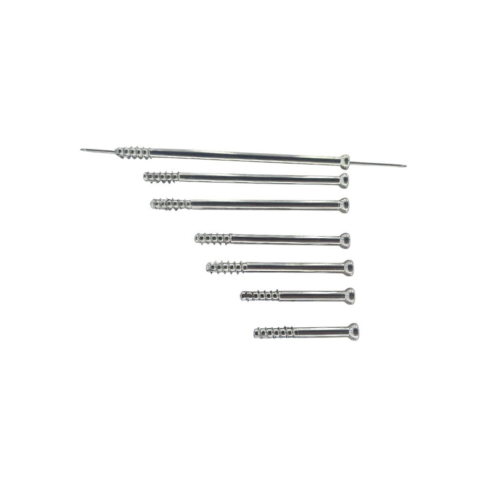 The 6.5mm Cannulated Cancellous Screws (16 & 32 mm Thread) – 320 Pcs (Stainless Steel 316L) is designed for orthopedic trauma fixation and reconstructive procedures involving cancellous bone. Made from medical-grade Stainless Steel 316L, these screws provide exceptional strength, corrosion resistance, and biocompatibility. The set includes both 16 mm and 32 mm thread-length screws, ensuring versatility for proximal and distal fixation. Each screw is cannulated for guided insertion, reducing surgical time and enhancing accuracy. Ideal for use in femoral neck, tibial plateau, and pelvic fracture fixation.