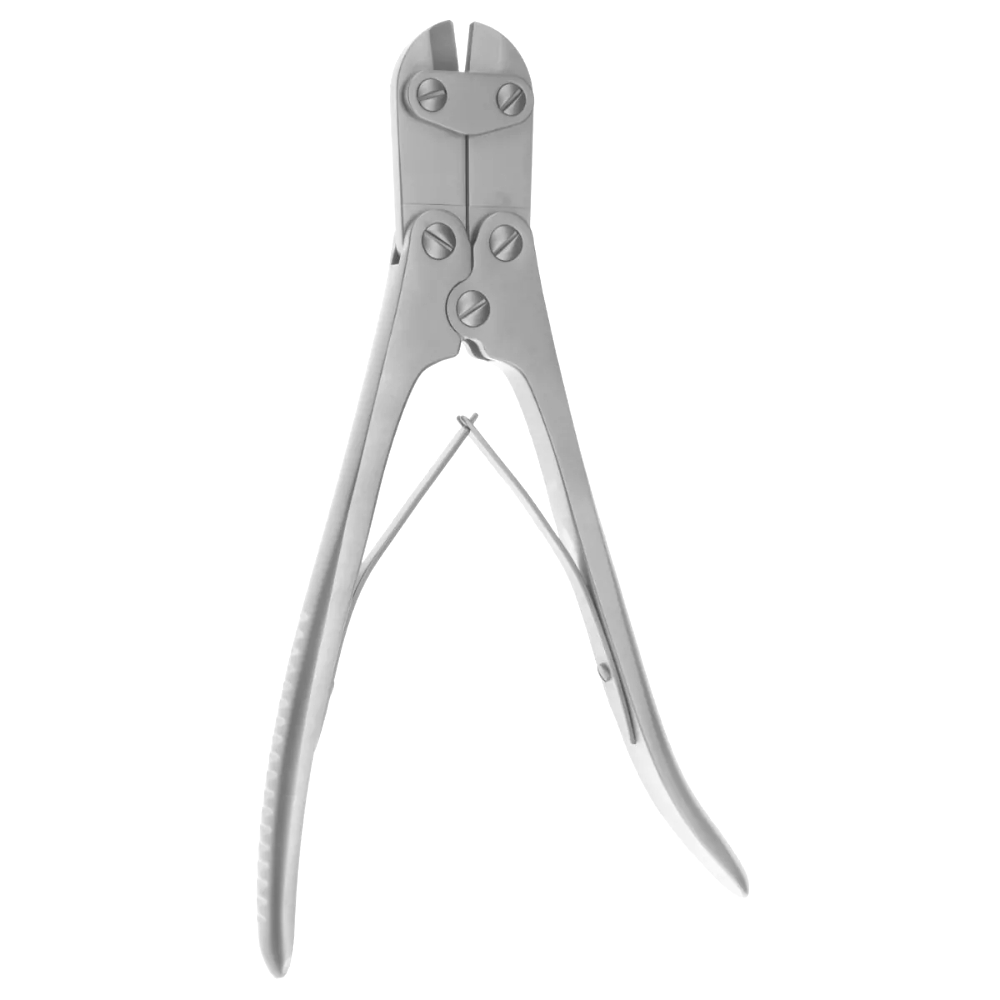 9.5″ Double Action Pin Cutter – Side Cutting The 9.5″ Double Action Side Cutting Pin Cutter provides strong cutting performance in orthopedic pin removal and trimming tasks. Its double-action mechanism multiplies force, reducing surgeon effort and improving cut smoothness. The side-cutting head enhances approachability around implants and bone contours, offering better access in complex anatomical environments. Durable construction ensures consistent sharpness and alignment across repeated sterilization cycles.