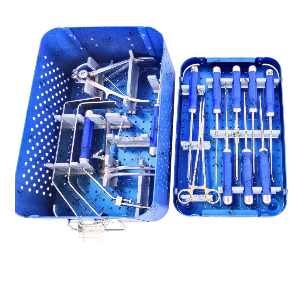 Materials: Surgical Stainless Steel Instruments, Titanium Plates (optional), Aluminum Box