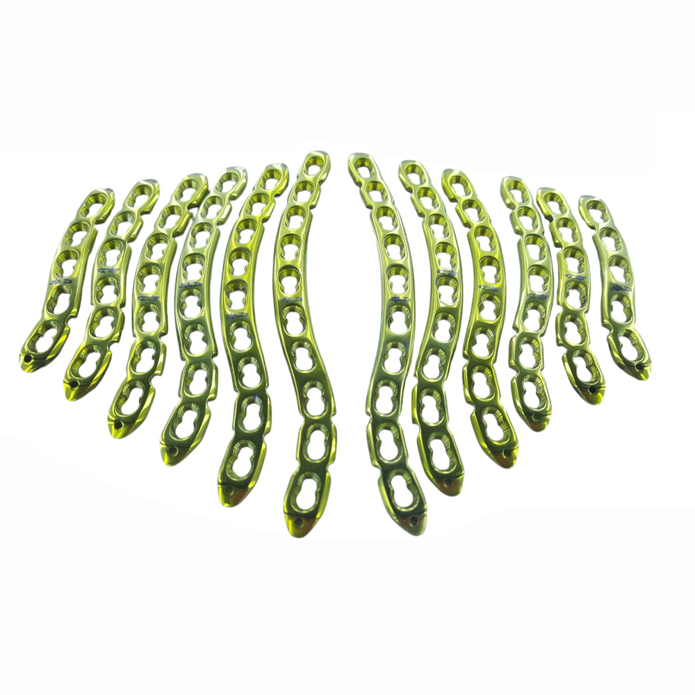 The Anterior Clavicle Locking “S” Plate (5-10 Hole) with 3.5mm LCP Screws – Titanium Grade 5 for clavicle fractures, particularly those in the midshaft and lateral third. The S-shaped design conforms to the anterior curvature of the clavicle, reducing soft tissue irritation while offering strong fixation. Manufactured from Titanium Grade 5, the plate ensures high strength, corrosion resistance, and optimal biocompatibility. The set includes 114 screws (3.5mm) for secure locking and enhanced fracture stability.