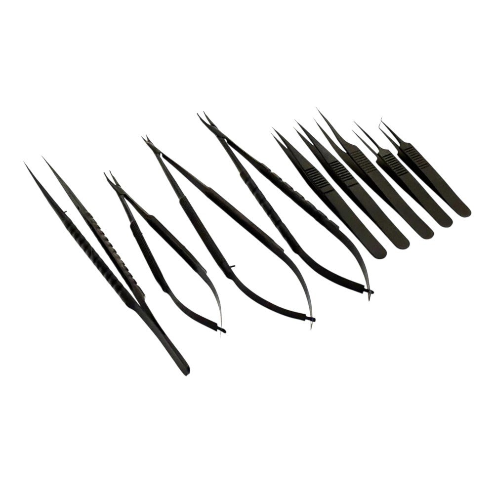 9-piece micro surgical instrument set for precise microsurgery.