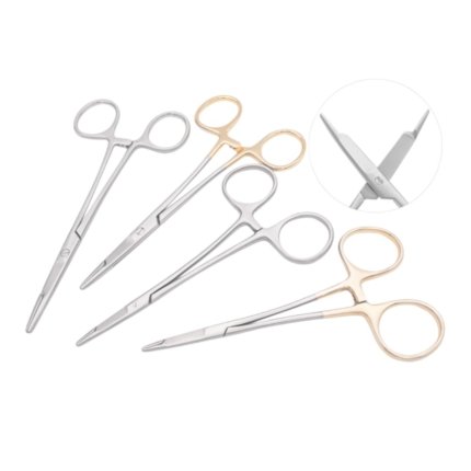 Includes scissors, clamps, forceps, and needle holders