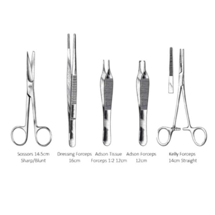 Biopsy & Dressing Kit is a specialized surgical kit designed for safe and precise tissue sampling, wound care, and dressing procedures. This kit contains all essential instruments for performing incisional, excisional, or punch biopsies, managing minor wounds, and applying sterile dressings, ensuring optimal patient safety and clinical efficiency. Constructed from premium surgical-grade stainless steel, the instruments are durable, corrosion-resistant, and ergonomically designed for precise handling. The set is suitable for hospitals, outpatient clinics, pathology labs, and dermatology offices, allowing healthcare professionals to perform biopsies and wound care procedures confidently and safely.
