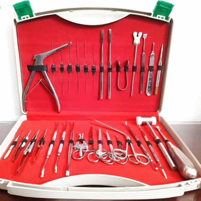 DCR Surgery Set – 31 Pcs Stainless Steel Ophthalmic & ENT Instruments Kit with precision using this 31-piece DCR Surgery Set. Crafted from premium surgical stainless steel, each instrument is engineered for durability, corrosion resistance, and long-lasting performance. This comprehensive set includes all essential tools required for lacrimal sac surgery, nasal procedures, and delicate ophthalmic manipulations, ensuring efficiency and accuracy in every operation.