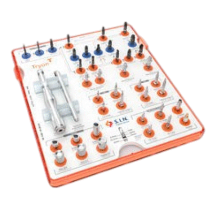 Dental Implantology Instrument Kit – All Medical Equipment Manufacturers The Dental Implantology Instrument Kit is a professional surgical set available from leading medical equipment manufacturers, designed to meet the needs of dental surgeons and implantologists. This complete kit includes the essential instruments required for implant site preparation, implant placement, sinus lift procedures, bone grafting, and soft tissue management.