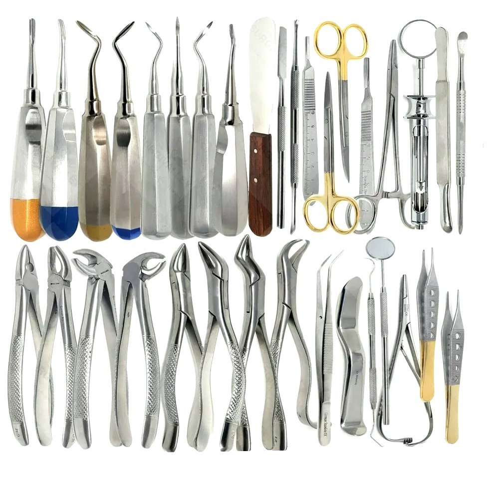 Includes All Key Instruments: Elevators, forceps, scalpels, scissors, retractors, and more.