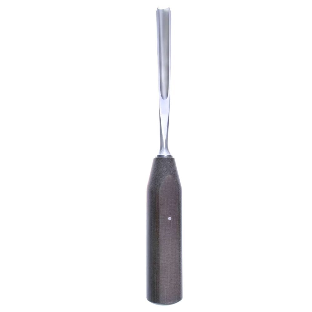The Dermatology & Holloware 10″ Phenolic Gouge – Straight, ⅜″ is a precision surgical tool designed for bone contouring and shaping with enhanced surgeon comfort. The straight ⅜″ gouge provides excellent accuracy for fine bone sculpting and controlled cutting. Its phenolic handle offers a non-slip, heat-resistant, and lightweight grip that improves maneuverability and reduces fatigue. The stainless-steel working end ensures durability and consistent sharpness, ideal for delicate bone work in orthopedic and reconstructive surgeries. The combination of metal and phenolic materials makes this gouge both practical and durable in long surgical sessions.