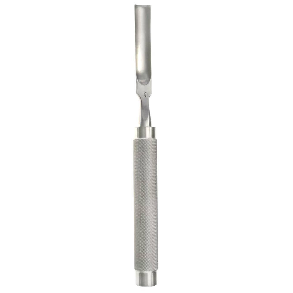 The Dermatology & Holloware 11″ Bone Gouge – ¼″ Curved is a precision-crafted surgical instrument designed for fine, controlled bone removal and sculpting in delicate or curved anatomical areas. Its ¼″ (6 mm) curved blade provides superior access to concave surfaces, allowing surgeons to work with exceptional precision. The 11″ handle delivers optimal reach and leverage, enhancing stability and control during intricate orthopedic or cranial procedures. Manufactured from high-grade surgical stainless steel, this gouge ensures durability, consistent sharpness, and excellent corrosion resistance throughout repeated use.