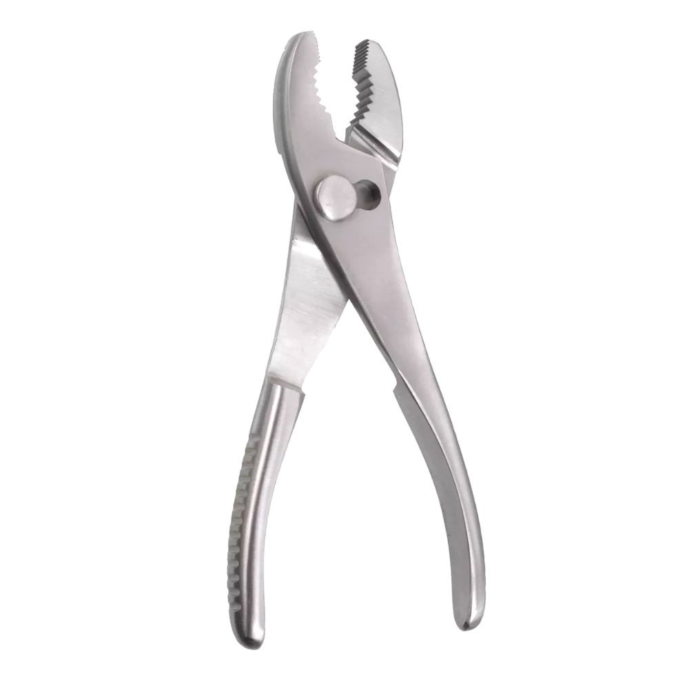 The Dermatology & Holloware 6¼″ Pliers – Slip Joint are heavy-duty surgical instruments designed for adjustable, versatile gripping and manipulation of wires, screws, or small hardware in dermatologic, orthopedic, and reconstructive surgeries. The slip-joint mechanism allows adjustable jaw width for different tasks, combining strength with flexibility.