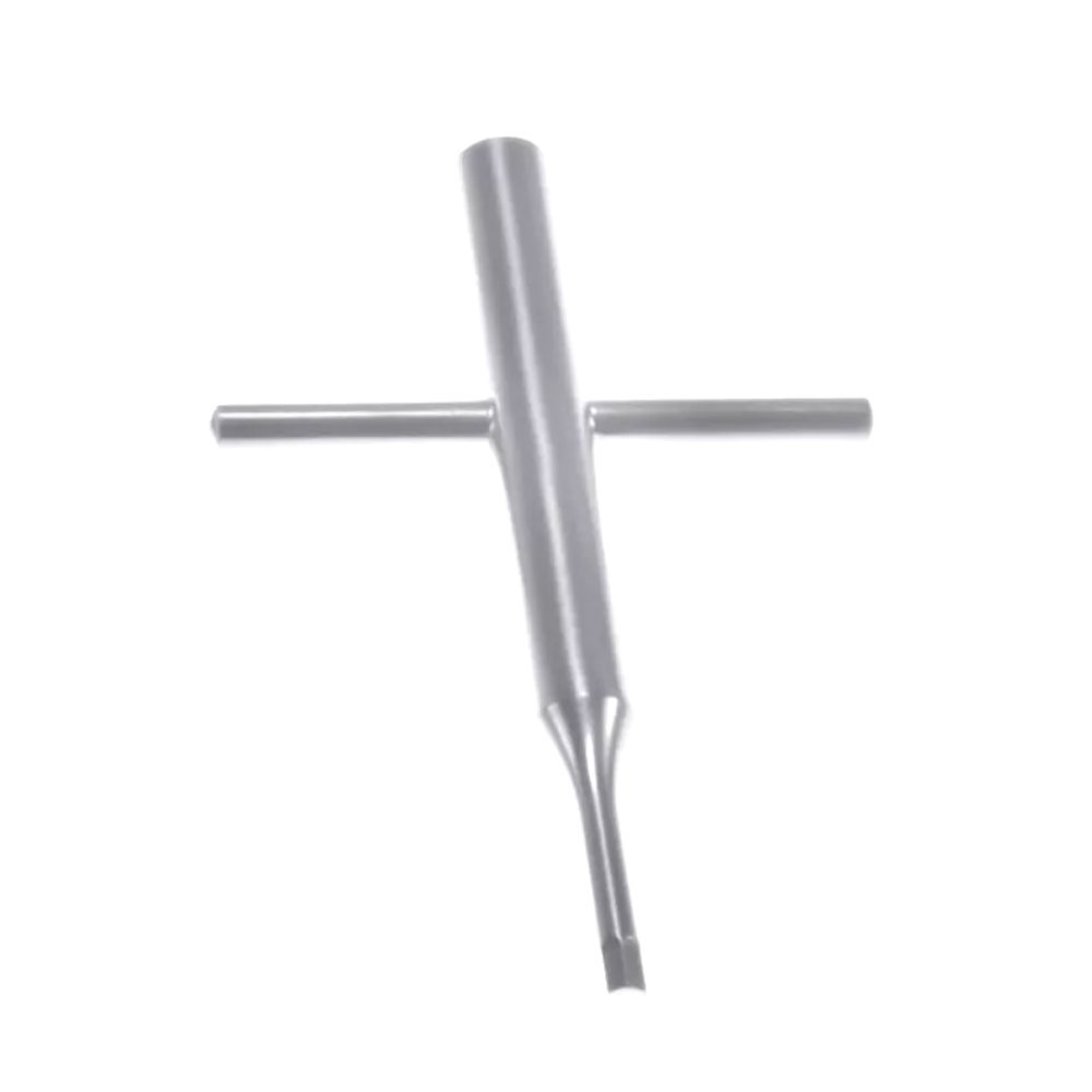 The Dermatology & Holloware Chuck Key for Handpiece is a precision-engineered accessory designed for secure tightening and release of interchangeable surgical blades and attachments. Specifically built to complement the Phenolic Handpiece and other compatible systems, this chuck key ensures a firm, stable connection between the handpiece and the chisel or gouge blade. Its rugged stainless-steel construction guarantees durability and long-term reliability, even under frequent sterilization. Compact and easy to use, it provides quick adjustment during surgery, improving workflow efficiency and ensuring the safety of blade handling.
