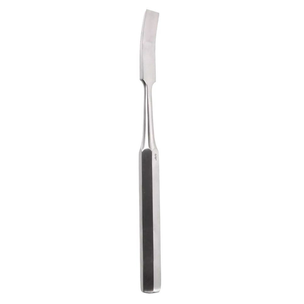 The Dermatology & Holloware Hibbs Chisel – 9¼″ Curved, ⅝″ Wide combines cutting efficiency and contour control for orthopedic and spinal surgeries requiring precision and depth. The ⅝″ curved cutting edge allows surgeons to remove or shape bone along natural anatomical curves without compromising accuracy. The 9¼″ handle length ensures balanced leverage and smooth motion, while the Hibbs pattern handle design provides comfort and anti-slip control during long procedures. Built from surgical-grade stainless steel, it delivers superior edge retention, corrosion resistance, and reusability across multiple sterilization cycles.
