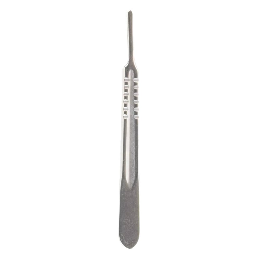 The Knife Handle #4 from Dermatology & Holloware is a reliable, professional-grade handle designed for larger surgical blades and procedures requiring deep or extensive incisions. It is compatible with #20–#25 surgical blades, providing surgeons with excellent stability, control, and strength during operations.