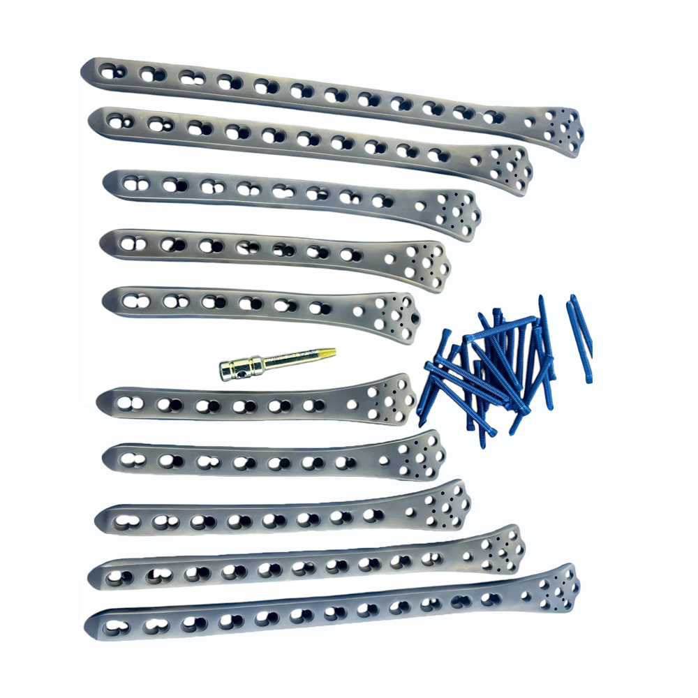 This Distal Femur Locking Plate (6,7,8,10,12 Holes) L&R with Screws – Titanium Grade 5 (102 pcs) is anatomically designed for left and right distal femur fractures in veterinary or small animal orthopedic procedures. The multiple-hole configuration (6,7,8,10,12) provides versatile fixation options for complex fracture patterns. Constructed from Titanium Grade 5, the plate ensures superior strength, corrosion resistance, and biocompatibility. The set includes 102 high-quality screws for complete surgical readiness.
