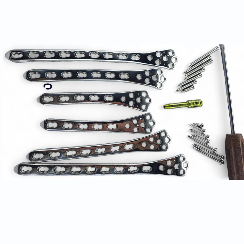 This Distal Femur Locking Plates – 4.5/5.0 mm, 5, 7 & 9 Holes with Screws – 80 pcs SS 316L is designed for complex distal femoral fractures, including intra-articular and supracondylar injuries. Made from surgical-grade SS 316L, these plates offer excellent strength, corrosion resistance, and long-term durability. Available in 5-, 7-, and 9-hole configurations, the system allows precise adaptation to the patient’s anatomy. The locking screw interface provides angular stability, making it ideal for osteoporotic bone and comminuted fracture patterns.