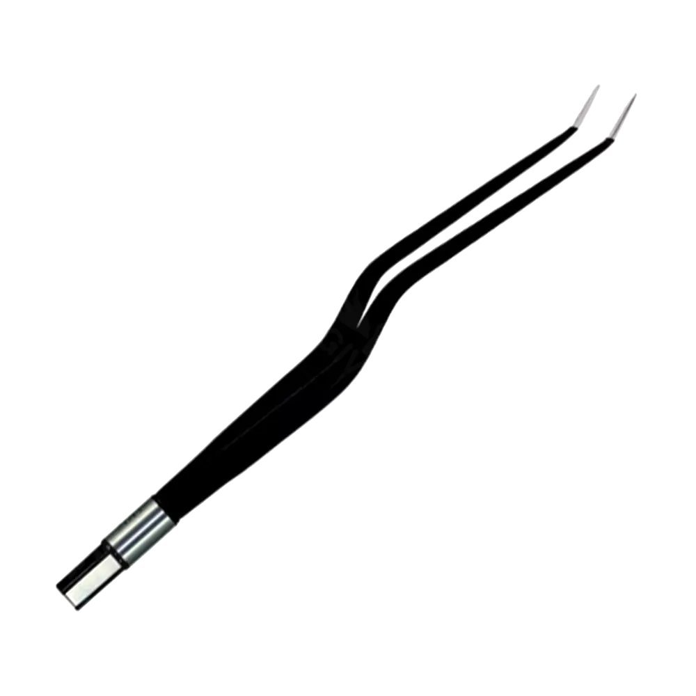 Crafted from premium German stainless steel, these forceps feature non-stick, silver- or titanium-coated tips that ensure consistent current flow while minimizing tissue adhesion and heat build-up. The angled bayonet configuration enhances accessibility in restricted anatomical spaces, allowing surgeons to work with superior precision and comfort.