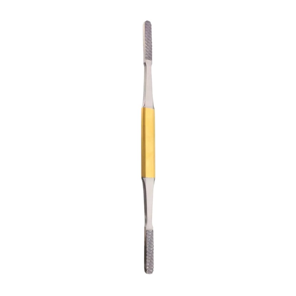 The ENT 8 1/2″ Rasp coarse grit 7 & 8 is a professional-grade surgical rasp designed for powerful bone contouring and shaping during rhinoplasty and facial reconstructive procedures. Its dual-ended coarse grit surfaces provide efficient bone reduction while maintaining precise control, allowing surgeons to sculpt nasal structures accurately. Crafted from top-quality stainless steel, this rasp ensures durability, corrosion resistance, and long-lasting sharpness. The ergonomically contoured handle provides a secure grip, minimizing fatigue during extended surgical sessions. Perfect for initial bone reduction and shaping stages, this rasp guarantees consistent performance and clean contour lines.