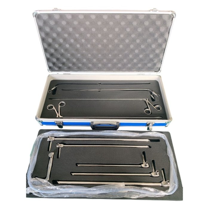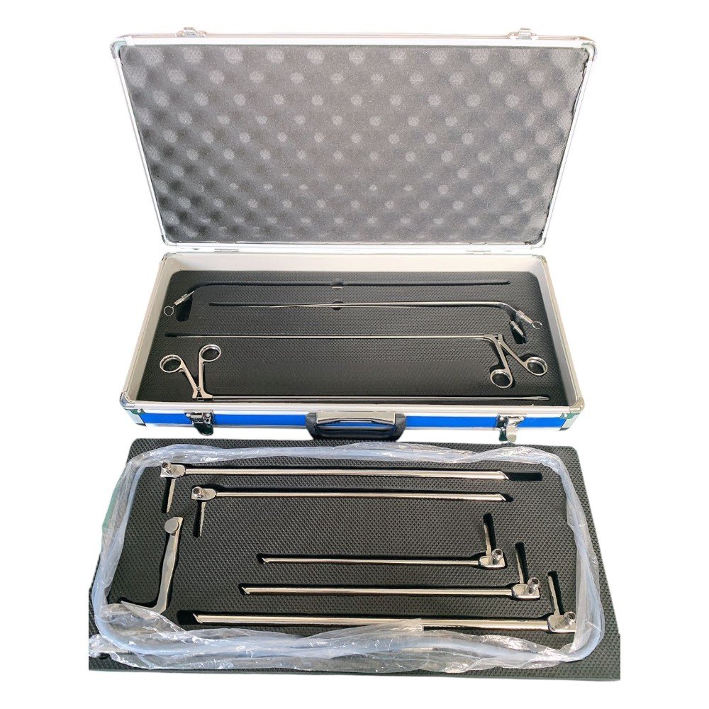 Esophagectomy Instrument Set is a specialized and comprehensive surgical kit designed for performing esophageal resection and reconstruction procedures, typically required in cases of esophageal cancer or severe esophageal disease. This set provides surgeons with the full range of instruments needed for exposure, dissection, mobilization, resection, and anastomosis of the esophagus. Each instrument is made from high-quality surgical stainless steel, ensuring corrosion resistance, precision handling, and long-term durability. The set commonly includes fine dissecting scissors, forceps, vascular clamps, retractors, needle holders, and suction instruments, all carefully selected to meet the complex demands of thoracic and gastrointestinal surgery. Designed for advanced surgical use, this set allows surgeons to work with accuracy while minimizing complications and ensuring patient safety.