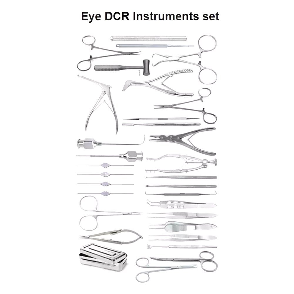 The Eye DCR (Dacryocystorhinostomy) Instruments Set is a specialized surgical kit meticulously designed for ophthalmic surgeons performing lacrimal drainage system surgeries. This set provides all essential tools required to create a passage between the lacrimal sac and nasal cavity, ensuring precision, minimal trauma, and optimal surgical outcomes. Each instrument is expertly crafted from high-quality surgical-grade stainless steel to deliver unmatched durability, corrosion resistance, and fine control. Ergonomically designed handles enhance grip and maneuverability, making it ideal for delicate eye and nasal procedures. Suitable for hospitals, ophthalmic centers, and ENT surgical departments.