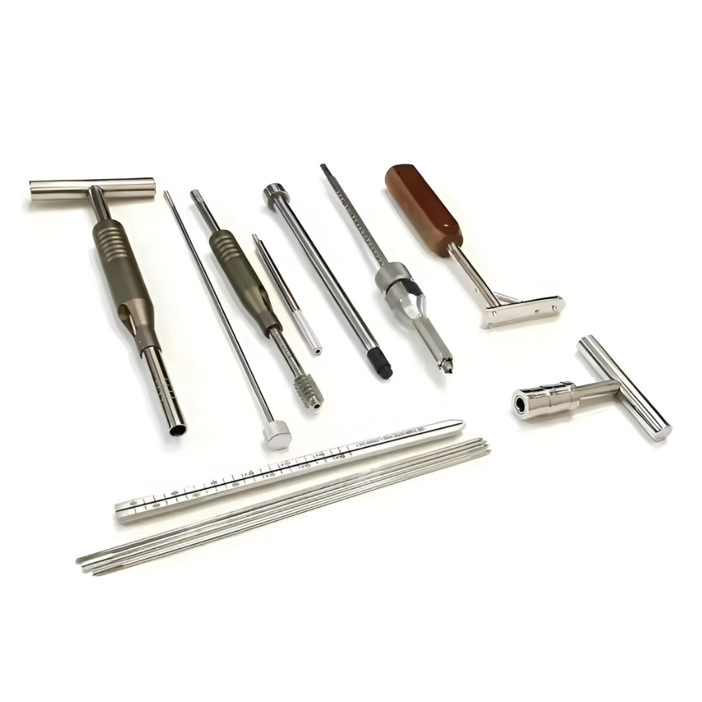 Components: Plates, screws, guides, reamers, instrumentation
