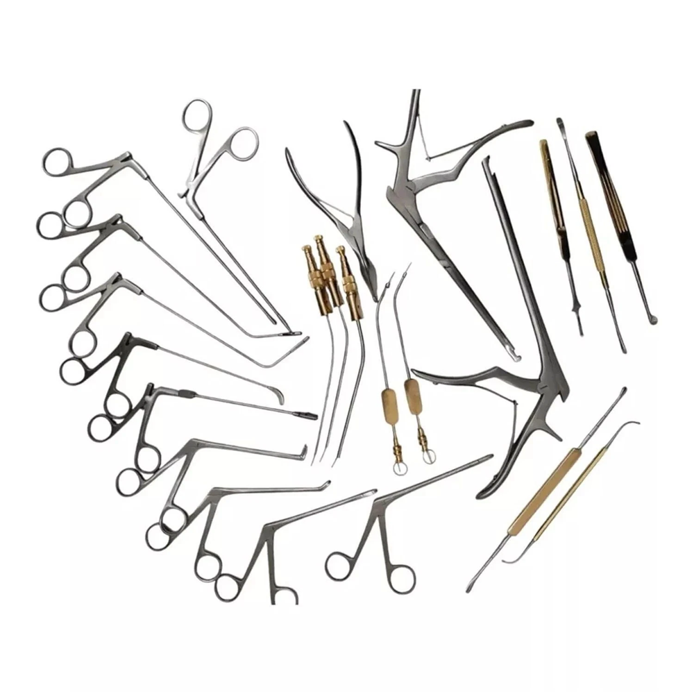 The Fess Instruments Set Endoscopic Sinus Surgery Ent Instrument Set A+ German Steel provides ENT specialists with a comprehensive range of tools required for safe and precise endoscopic sinus surgery. Crafted from A+ German stainless steel, this set offers superior strength, excellent resistance to corrosion, and unmatched durability. It includes Blakesley forceps in multiple angles, through-cutting forceps, nasal scissors, suction instruments, probes, and curettes. Each tool is ergonomically designed to allow surgeons maximum control during delicate sinus procedures while minimizing tissue trauma. This premium kit is suitable for hospital operating theaters and ENT specialty centers performing advanced sinus treatments.