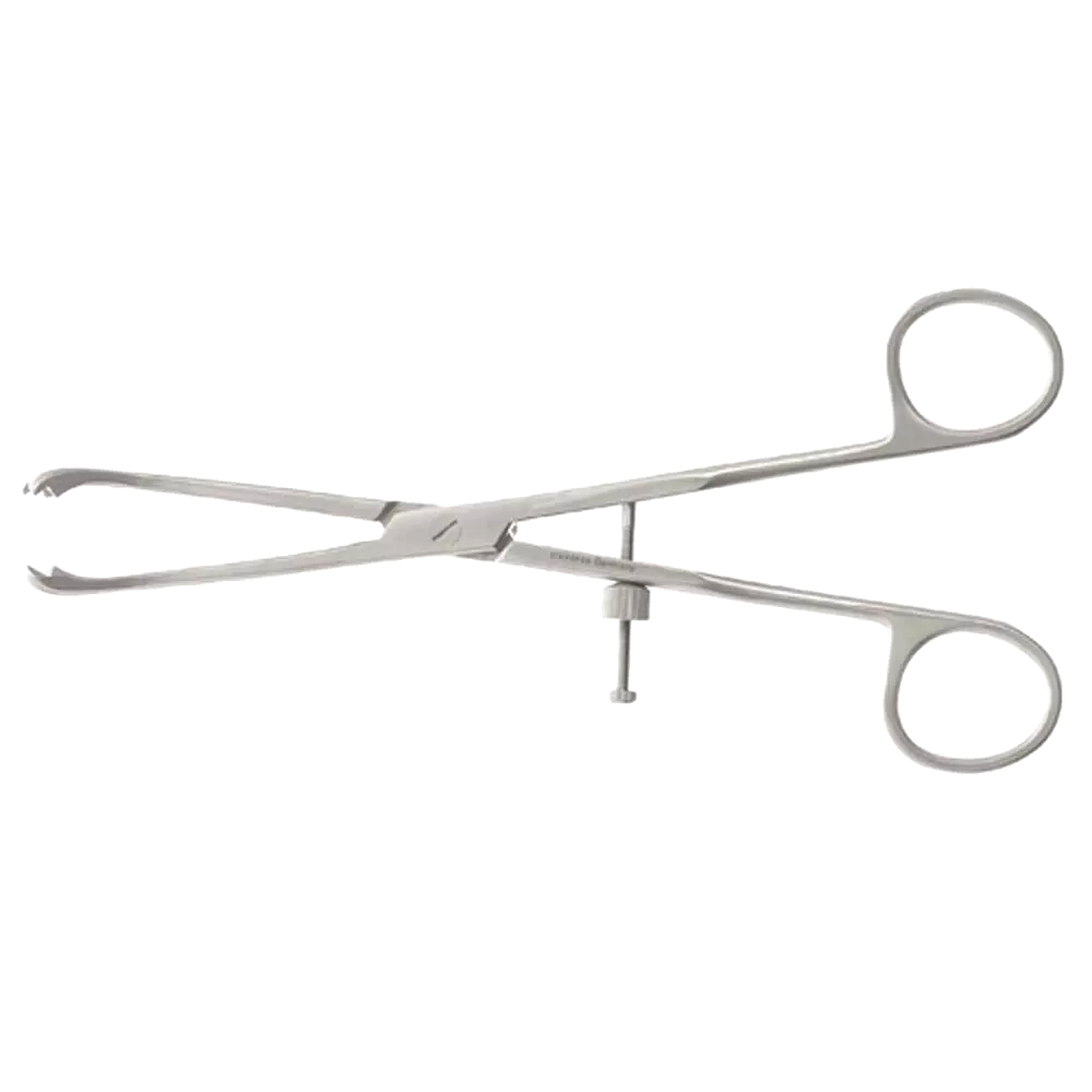 Fibula Speed Lock Forceps – Bone Holding and Fixation Instrument The Fibula Speed Lock Forceps are meticulously designed for secure bone grasping and fixation during orthopedic surgeries involving the fibula. Equipped with a quick-locking mechanism, these forceps provide instant stability, allowing surgeons to maintain steady alignment while performing osteotomies or plate fixations. The ratcheted locking system ensures a firm hold without slippage, while the ergonomic curved handle provides superior leverage and comfort. Constructed from German stainless steel, the instrument is built for precision, reliability, and repeated sterilization cycles.