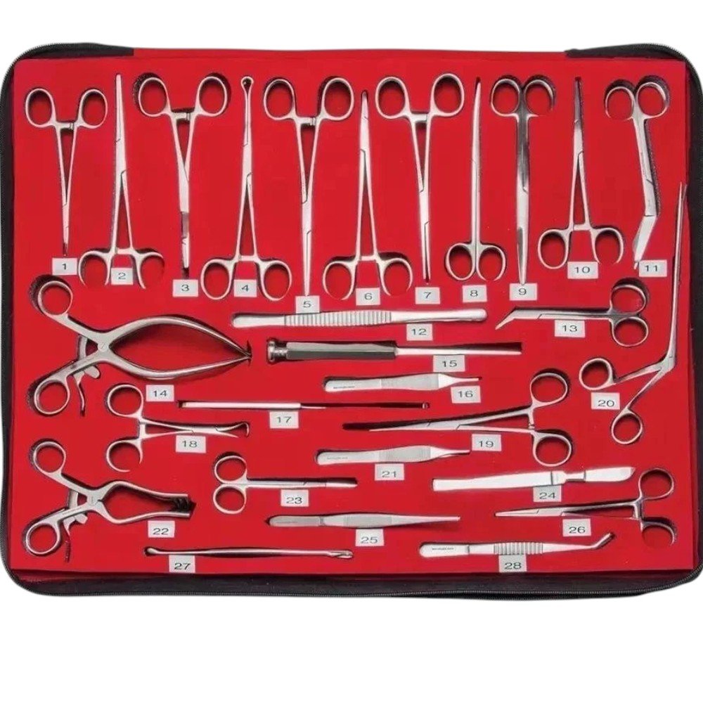 Hernia Set – 28 Pcs General Surgery Medical Instruments is a specialized kit tailored for general surgeons performing hernia repair surgeries, including open and abdominal hernia procedures. This set contains all the essential instruments required for incision, tissue dissection, retraction, suturing, and mesh placement.Manufactured from high-quality stainless steel, each instrument provides durability, corrosion resistance, and precise functionality. The selection of clamps, forceps, retractors, scissors, and suturing instruments ensures smooth workflow during hernia repair. Designed with ergonomic grips and atraumatic edges, the instruments provide both safety for patients and comfort for surgeons during long procedures.This set is a preferred choice for inguinal, umbilical, femoral, incisional, and other hernia repairs, making it suitable for both routine surgeries and teaching hospitals. Its durability and comprehensive instrument selection make it a valuable addition to general surgical departments.