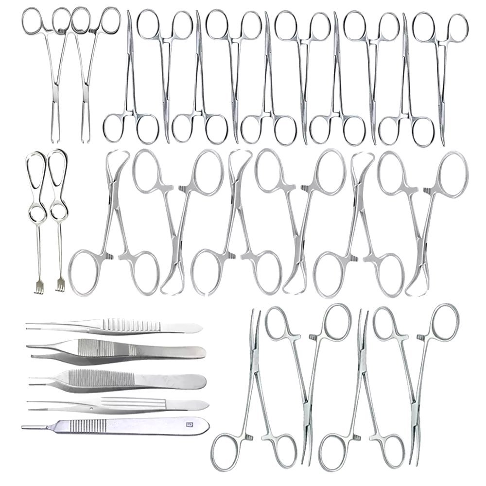 Includes precision retractors, clamps, and dissection instruments.