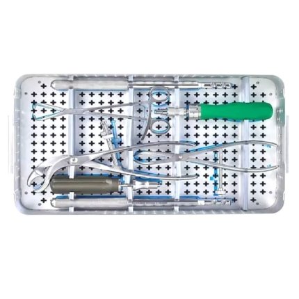 The Instruments Set Trays – Large Fragment Instrument Set is a high-performance orthopedic solution for fixation of large bone fractures such as femoral, tibial, and humeral reconstructions. Each instrument in this set is crafted from high-quality surgical stainless steel, ensuring strength, precision, and corrosion resistance. The tray is designed with structured compartments to securely hold each instrument, ensuring fast access and safe sterilization. Its perforated design promotes efficient steam circulation, making it fully autoclavable. Trusted by surgeons worldwide, this tray delivers dependable performance for complex orthopedic operations.