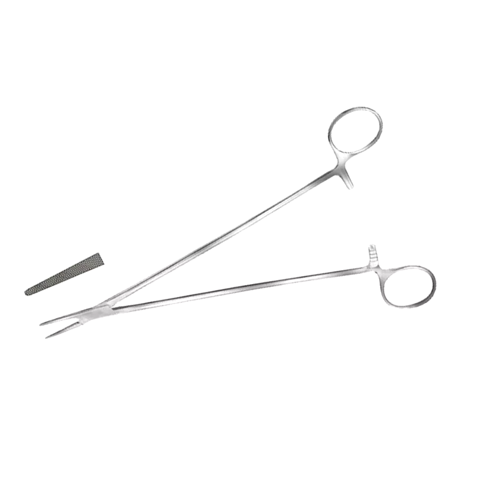 Jamson Needle Holder 1.8mm Jaw Self-Retaining Instrument 23cm The Surgicalmark Jamson Needle Holder (23cm) features a 1.8mm jaw and self-retaining ratchet mechanism, providing steady, reliable control during suturing. Designed for precision handling, the fine jaws ensure a secure needle grip without slippage, while the ergonomic structure minimizes strain during prolonged surgeries.