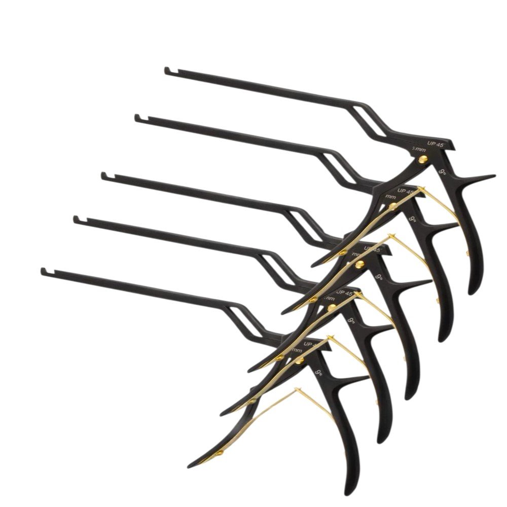 The Kerrison Bayonet Bone Spine Rongeur – Set of 5 PCs German Pattern is a premium 5-piece collection designed for high-precision bone cutting and removal during spinal and neurosurgical procedures. Crafted in the German pattern, each rongeur features a bayonet-style handle for superior visibility in confined spaces and enhanced ergonomic comfort. The sharp, durable jaws allow precise removal of bone and tissue with minimal trauma. Manufactured from high-quality stainless steel, these instruments ensure smooth action, longevity, and outstanding performance in spine surgery.