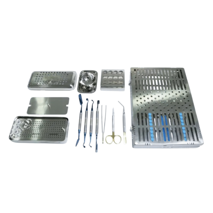 Dental Implantology Instrument Kit – MediDent International The Dental Implantology Instrument Kit by MediDent International is carefully designed to meet the needs of dental surgeons and implantologists for precise and safe implant procedures. This complete set provides all the essential instruments required for implant site preparation, implant placement, and soft tissue management with accuracy and efficiency.