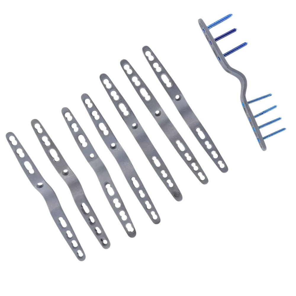 The LCP Wrist Fusion Plating System – 2.0/2.4mm (4+4 Holes) with Screws, 108 Pieces Titanium Set offers an advanced fixation solution for wrist arthrodesis and reconstruction. The system includes locking compression plates (2.0/2.4mm, 4+4 holes) along with matching screws, all made from premium titanium for exceptional strength and biocompatibility. Engineered with anatomical contours and precise hole alignment, this system ensures optimal fixation, stability, and surgical efficiency in both trauma and reconstructive wrist procedures.