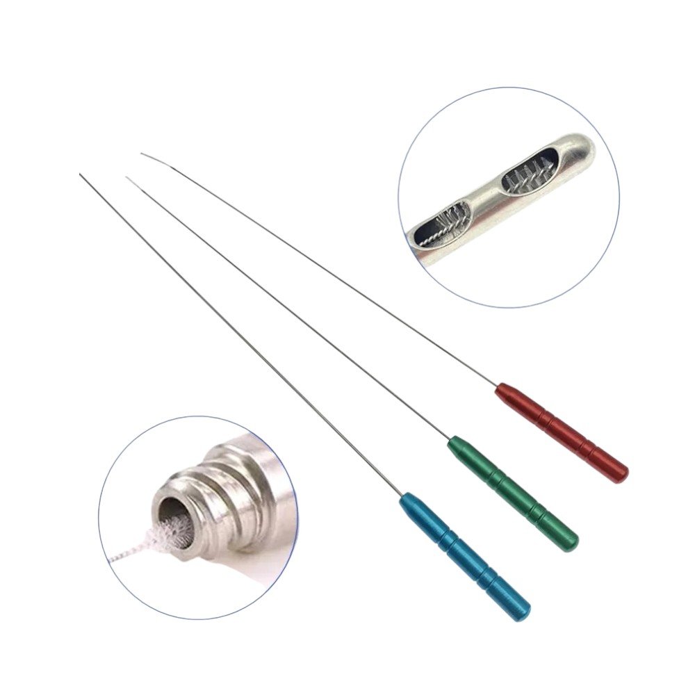 The Liposuction Cannula Cleaning Brush Set – 3 Pieces – Cannula Brush for Stem Cell & Fat Transfer Tools is designed for safe and thorough cleaning of reusable cannulas and liposuction instruments. This 3-piece set includes brushes of varying diameters, allowing surgeons to clean cannulas of different sizes with ease. The soft yet durable bristles ensure effective removal of debris without damaging delicate stainless steel surfaces. Essential for maintaining hygiene and extending instrument lifespan, these brushes are autoclavable and suitable for repeated use in surgical environments. Compact and practical, the set is an indispensable accessory for clinics committed to maintaining the highest standards of sterility.