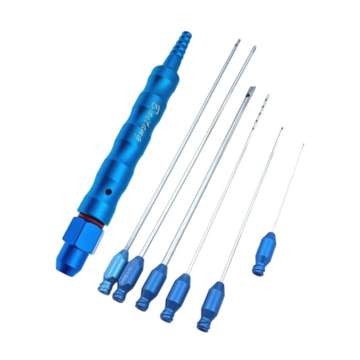 • Cannulas: 2.0mm × 150mm, 2.5mm × 200mm, 3.0mm × 200mm, 3.5mm × 250mm, 4.0mm × 250mm, 4.5mm × 300mm, 5.0mm × 300mm