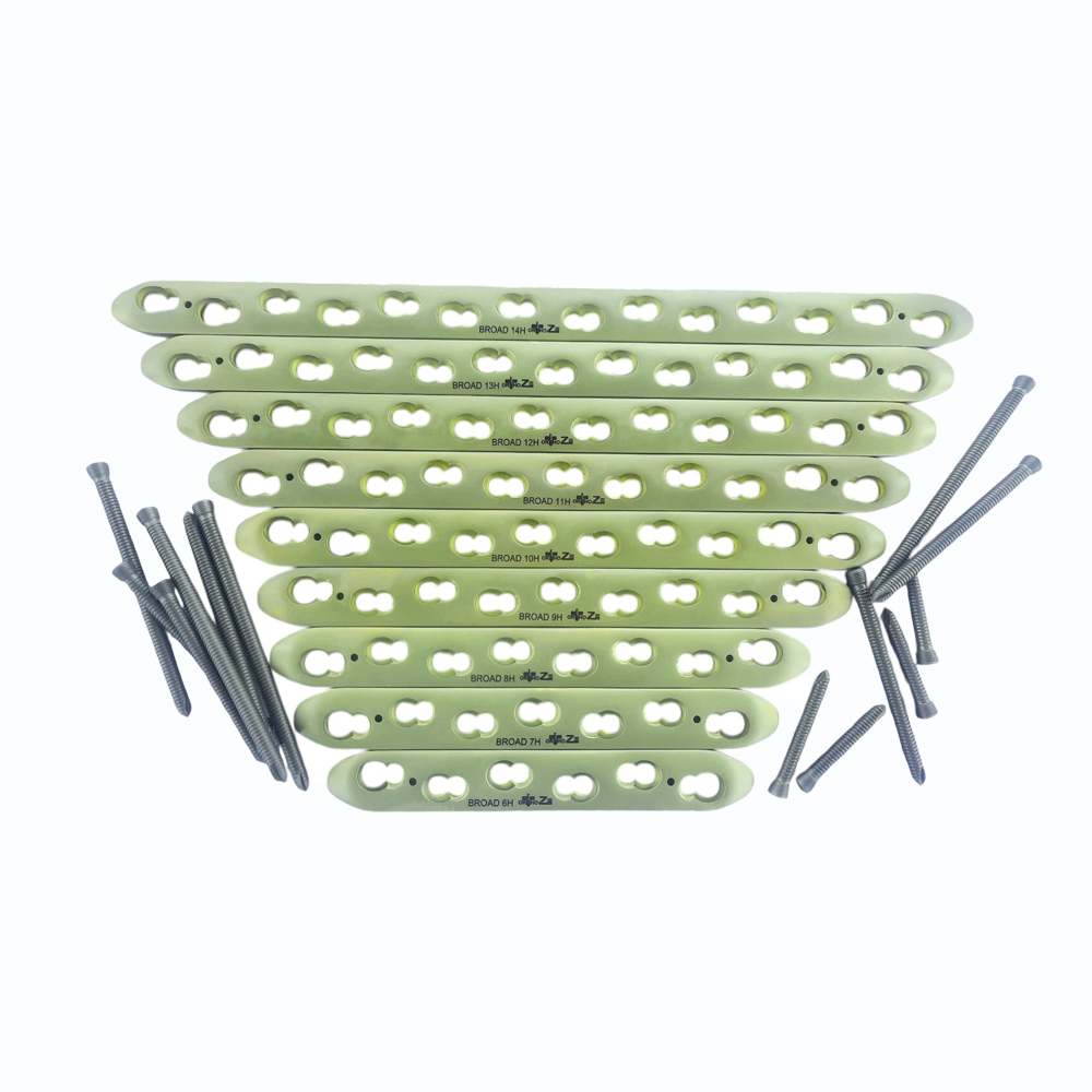 Home Orthopedic implant Locking 4.5/5mm Broad Plate (6–14 Holes) with 5mm LCP Screws – Titanium Grade 5 (115 pcs)