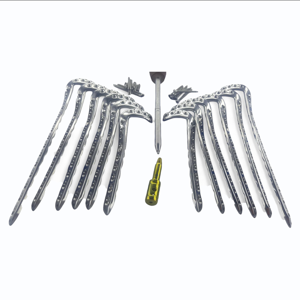 This Anterolateral Distal Tibia Locking Plate System is designed for fractures of the distal tibia, particularly cases involving the anterolateral plafond. Manufactured from durable SS 316L, the plates provide excellent strength, corrosion resistance, and reliability during high-stress physiological loading. Available in 6-, 8-, 10-, and 12-hole configurations, these plates are anatomically contoured to enhance precision placement while minimizing soft-tissue irritation. The locking screw interface ensures angular stability and helps maintain fracture alignment in osteoporotic or multi-fragment trauma.
