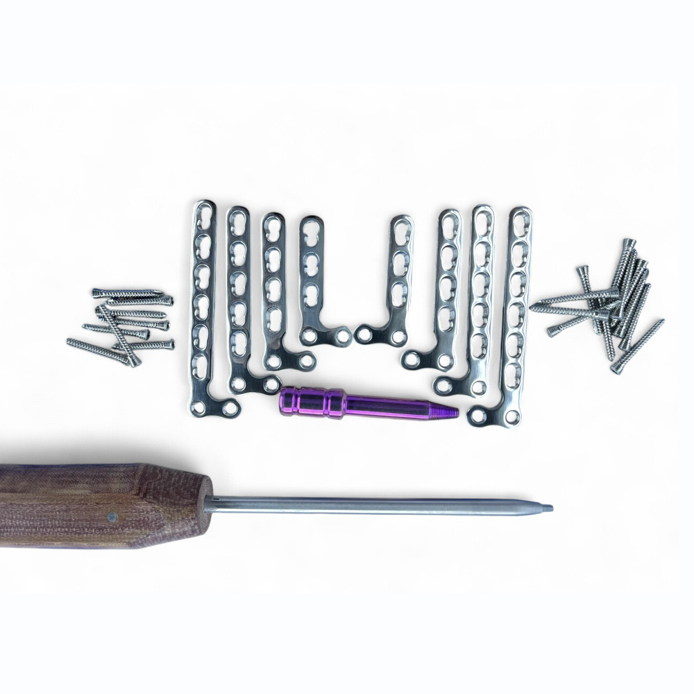 These Locking L Plates – 3 to 6 Holes for 2.7 mm LCP Screws – 60 pcs SS 316L of complex fractures requiring angular stability and precise anatomical alignment. Manufactured from SS 316L stainless steel, the plates provide excellent mechanical strength, corrosion resistance, and long-term reliability. The plates accommodate 2.7 mm LCP screws and are available in 3- to 6-hole configurations, allowing adaptation to various fracture patterns. Ideal for small bone trauma, metaphyseal fractures, and reconstructive procedures, this 60-piece set ensures surgeons have a complete solution for angular-stable fixation.