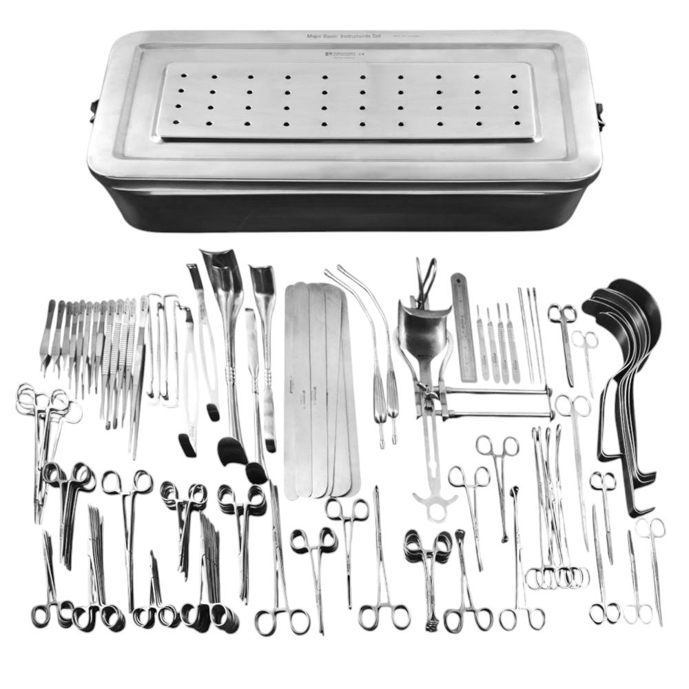 The Major Surgery Set is a comprehensive, high-quality surgical kit specifically designed for complex and advanced general surgical procedures. This set includes a wide range of precision cutting instruments, hemostats, tissue forceps, retractors, needle holders, suction devices, and specialized instruments required for major operations in hospitals and surgical centers. Crafted from premium surgical-grade stainless steel, the instruments offer exceptional durability, corrosion resistance, and precision. Each tool is ergonomically designed to provide surgeons with optimal control and comfort during lengthy or high-stakes procedures. This complete surgical kit is ideal for operating theaters performing abdominal, thoracic, orthopedic, or multi-disciplinary surgeries, ensuring that all essential instruments are organized, easily accessible, and ready for immediate use.