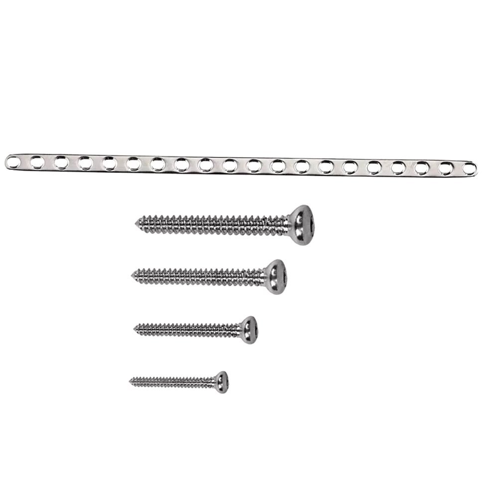 20-hole titanium plate with 20 compatible 2.0 mm screws.