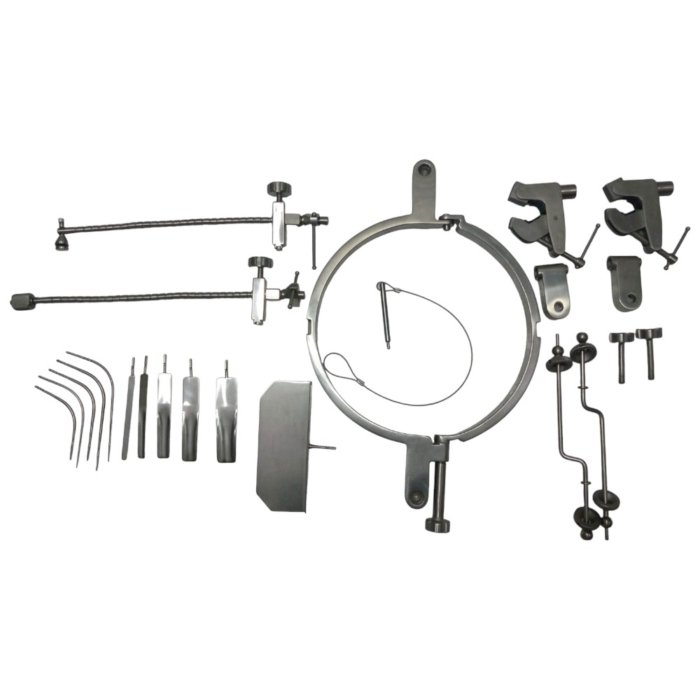Mayfield 3-Pin Retractor Set – Skull Clamp Stainless Steel Neurosurgery Head Fixation & Cranial Stabilization Instrument is a premium-grade neurosurgical instrument system designed for secure head fixation and cranial stabilization during brain and spinal procedures. Widely trusted in neurosurgery worldwide, this system provides surgeons with absolute stability, precision positioning, and reliable patient safety throughout delicate operations.
