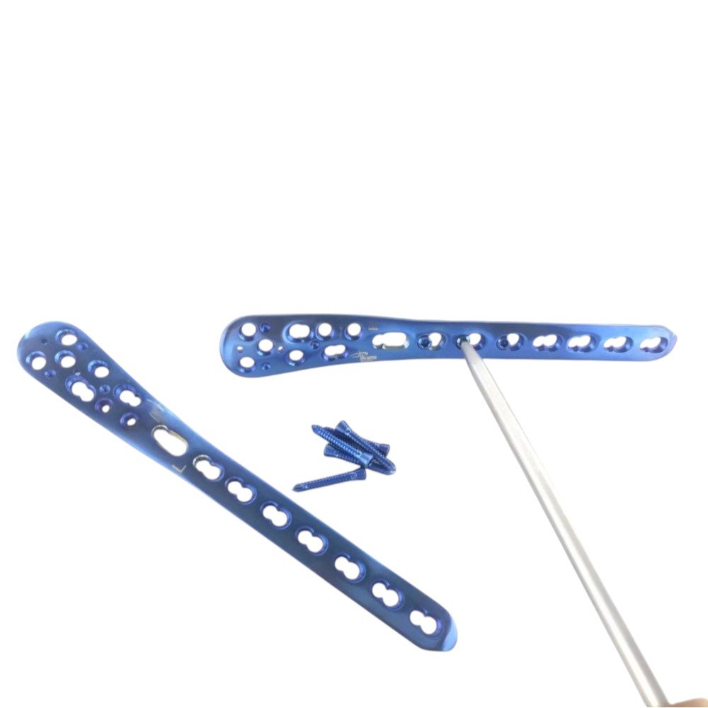 Medial Distal Tibia Locking 3.5mm Plates (L/R) with Screws – 155 Pcs Set is designed for anatomically precise fixation of distal tibial fractures and pilon injuries. The 3.5mm LCP plates, contoured for left and right configurations, offer angular stability and minimal soft tissue irritation. Each plate’s low-profile design allows close bone contact, reducing postoperative discomfort while maintaining biomechanical strength. Constructed from high-grade stainless steel or titanium, the system provides a durable and corrosion-resistant solution for trauma reconstruction. The 155-piece set includes a complete assortment of plates and 3.5mm locking screws arranged in a sterilization box, offering surgeons a ready-to-use, efficient fixation system for demanding orthopedic cases.