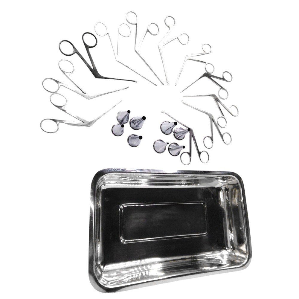This Micro Alligator Cup Ear Forceps + Bellucci Scissors + Specula – Surgical ENT Tools and essential Ear Specula tailored for otologic and microsurgical ear procedures. Each instrument is crafted from fine stainless steel, ensuring excellent maneuverability within the narrow auditory canal. The alligator forceps feature a slender shaft and micro cup jaw for delicate tissue handling and foreign body removal. Bellucci scissors provide crisp, controlled cutting for tympanic membrane and micro-ear procedures. The included specula ensure optimal visualization for examinations and surgical access. Ideal for ENT surgeons, otologists, and outpatient ear care facilities.