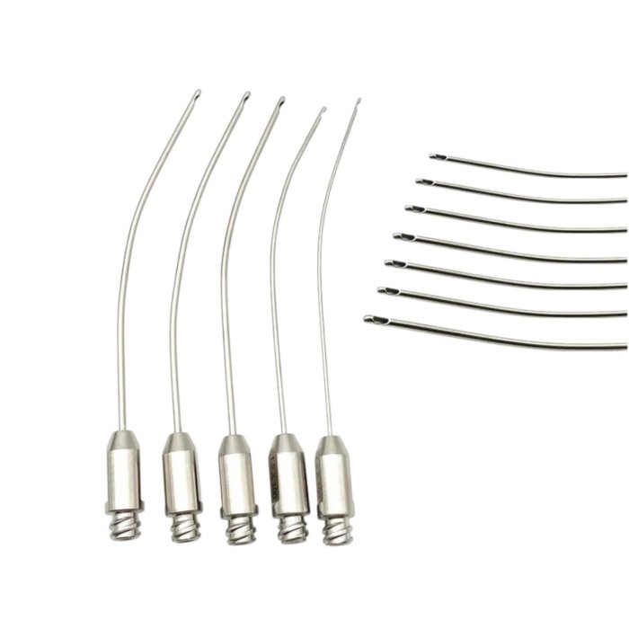 Precision in every curve — achieve flawless micro fat transfer with these specialized single and double-hole cannulas.